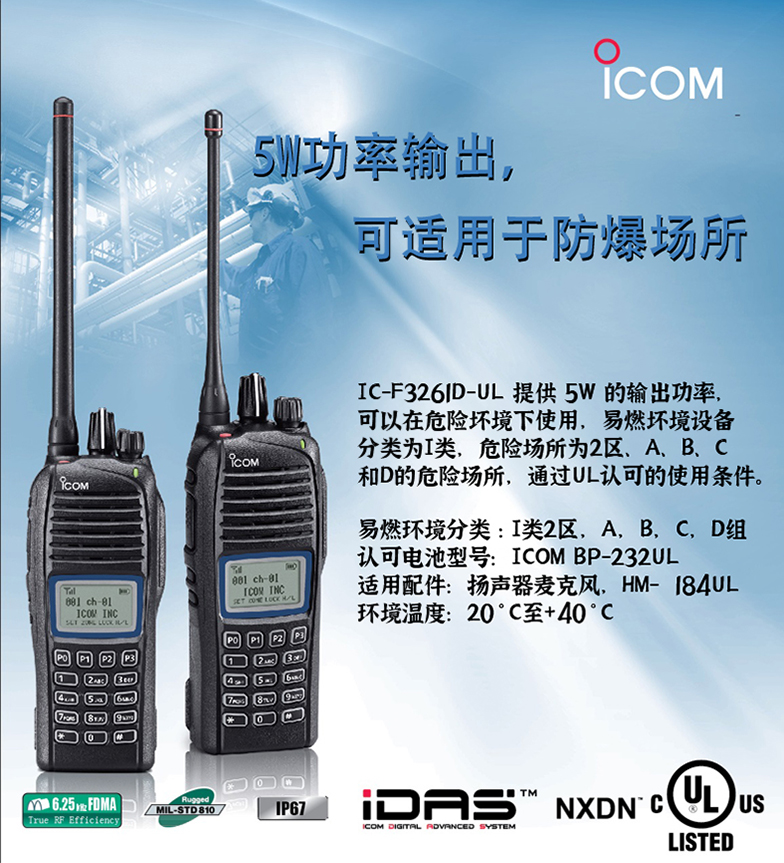 目前,日本ICOM公司在数字对讲机方面无疑具有先进地位。其产品如手台IC—3062T/S,IC—4062T/S,IC—F70DT/DS,IC—F80DT/DS,IC-F3108D/4108D,IC-F3161DT/4161DT,IC-F3230DT/4230DT,和车台IC—F5061DT/6061DT等系列产品得到了广泛好评。